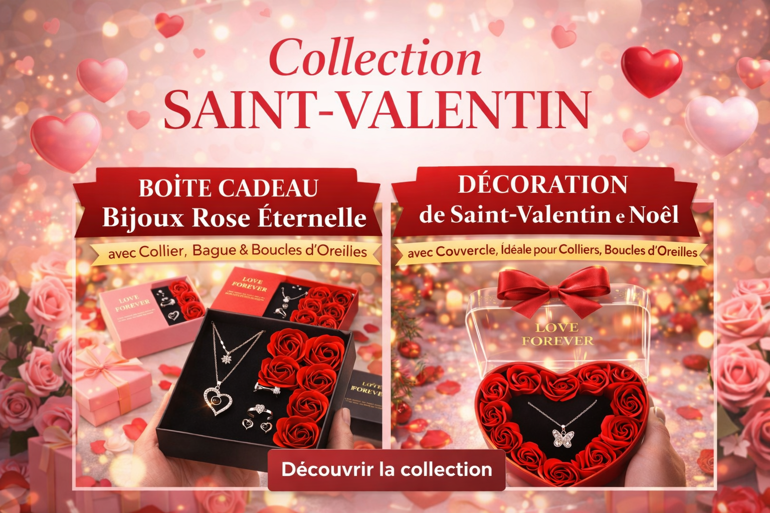 Coffrets bijoux et roses éternelles pour célébrer l’amour avec élégance et symbolique.